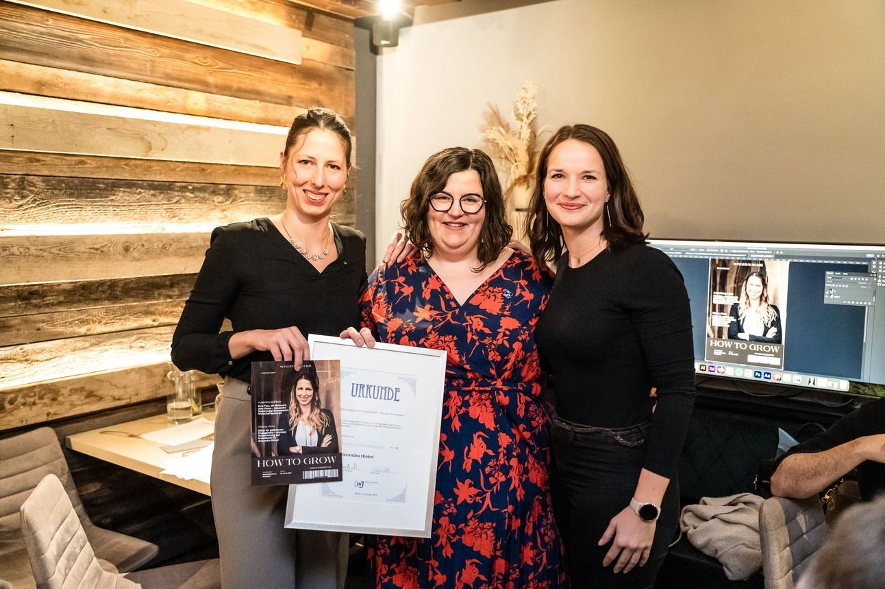 v.l.n.r. Preisträgerin Alexandra Hinkel, Carolin Hochmut (Mitglied im Bundesvorstand der WJ Deutschland), Theresa Wetz
