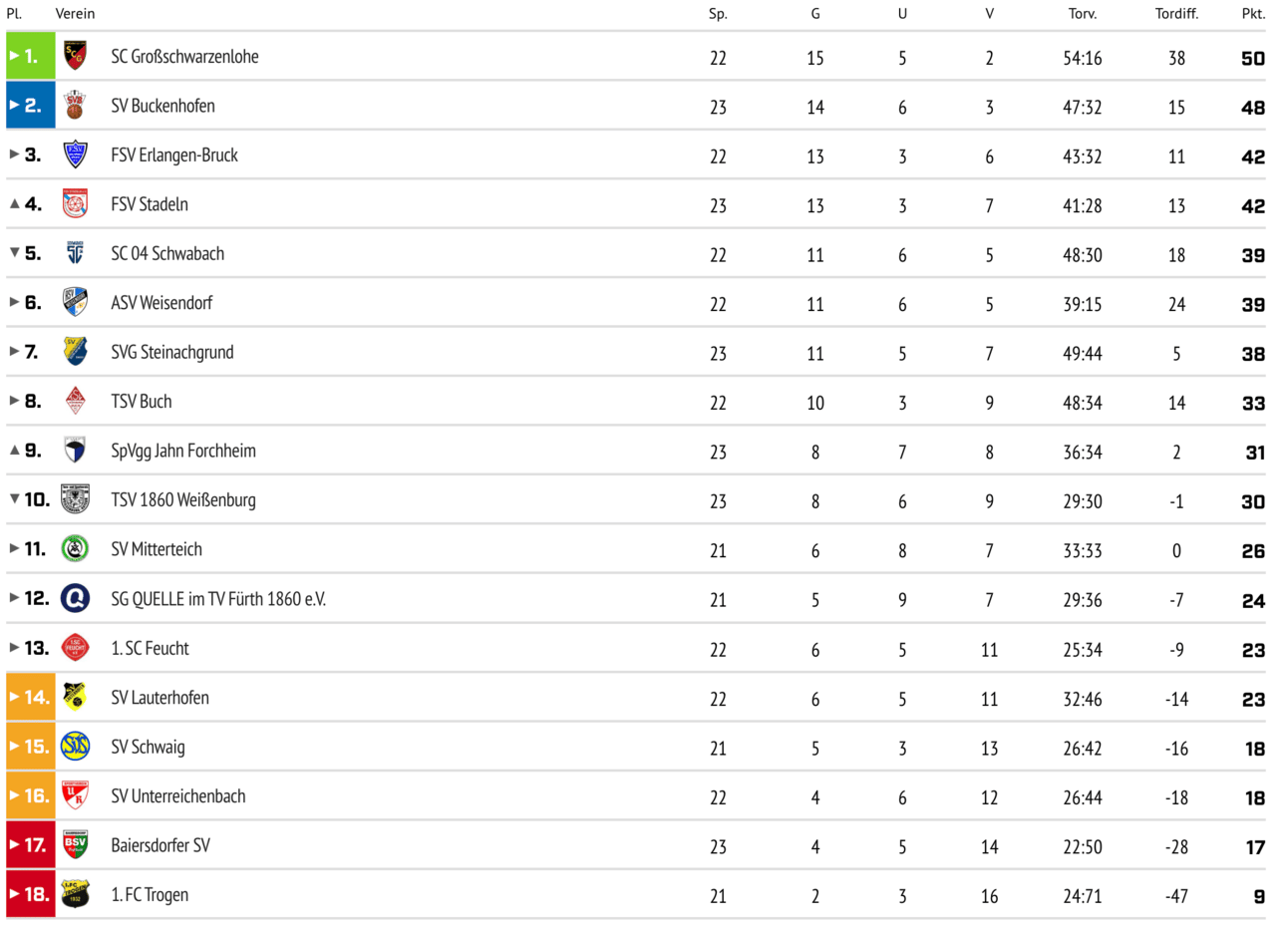 Blick auf die Tabelle vor dem Derby - Quelle: bfv