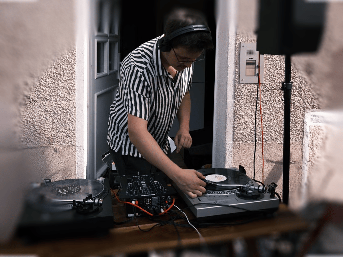 Erst viele Jahre später griff er selbst zu Vinyl. 2016 begann er, gezielt Schallplatten zu sammeln. Die Idee, selbst aufzulegen, entwickelte sich daraus eher beiläufig. Drei Jahre später ergab sich eine erste Gelegenheit: ein Auftritt im Schwabacher Beny’s, gemeinsam mit Metro-Kumpel Domi Maurer. Damals sei vor allem das musikalische Konzept sehr klar gewesen, erinnert er sich: Funk und Soul, mehr nicht.