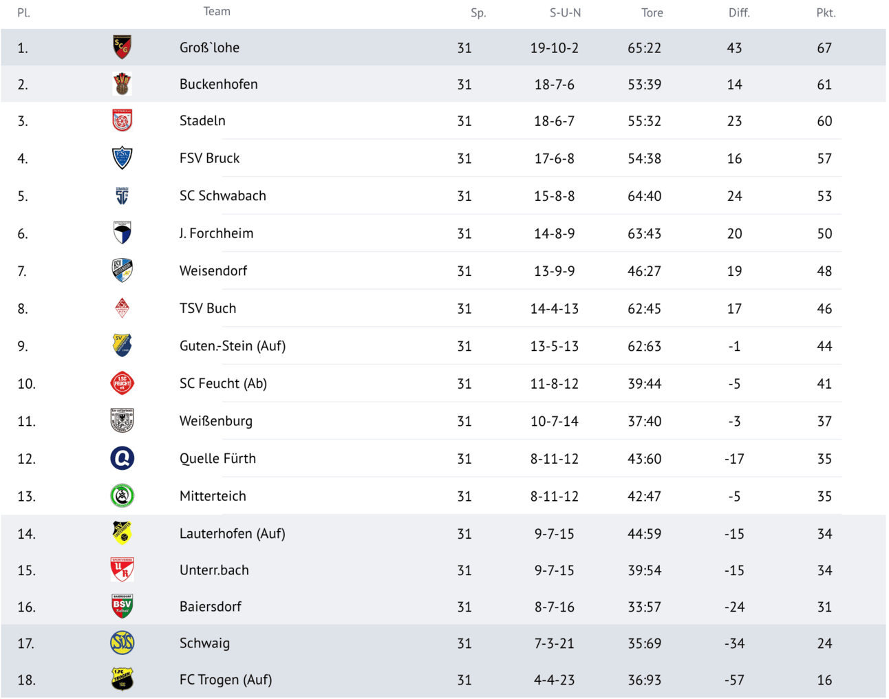 ⚽️ Schlussspurt in der Landesliga Nordost - Während der SC04 gegen Erlangen-Bruck zuhause mit 1:2 keinen Sieg erringen konnte, sicherten sich die Roten Teufel aus Unterreichenbach mit einem 4:1 gegen Schwaig elementare Punkte im Abstiegskampf. In den letzten Spielen gegen Gutenstetten (04.05, 14:00 Uhr, Auswärts), Nürnberg-Buch (09.05., 18:30 Uhr, Letztes Heimspiel) und vor allem die Quelle Fürth (17.05., 14:00 Uhr, Auswärts) haben es die Urus nun selbst in der Hand, den Klassenerhalt direkt zu erkämpfen. Für die Nullies hingegen geht es bei den Spielen gegen Weisendorf (04.05., 15:00 Uhr, Auswärts), Schwaig (09.05., 19:00 Uhr, Letztes Heimspiel) und Gutenstetten (17.05., 14:00 Uhr, Auswärts) nur noch um einen möglichst versöhnlichen Saisonabschluss. ☝️ ABER: Dass sie so lange im Aufstiegsrennen dabei waren, darauf kann die Mannschaft bereits jetzt stolz sein!