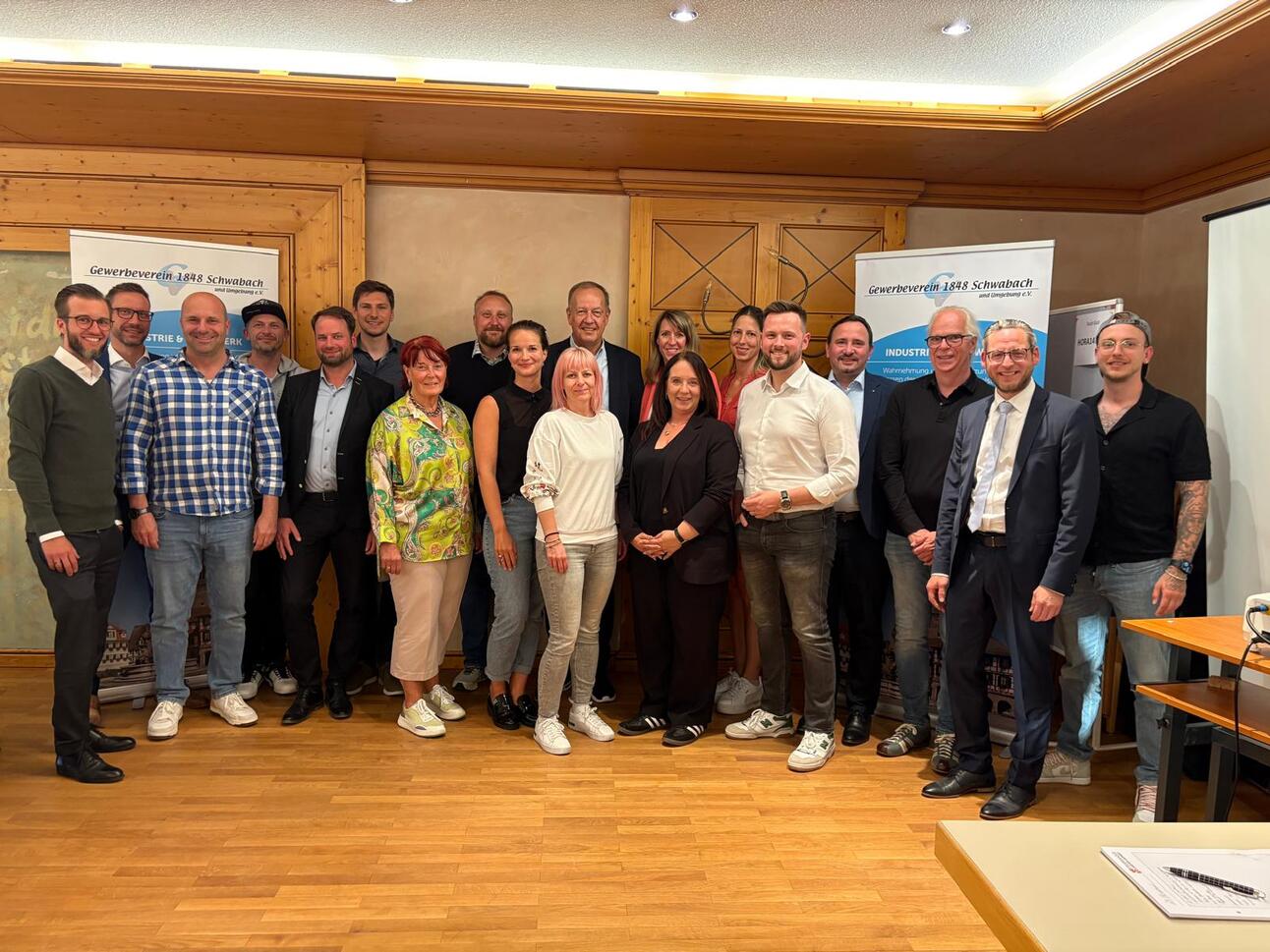 ⚽️ Gewerbeverein Schwabach und Umgebung mit Neuwahlen und Mitgliederversammlung - Auch der Gewerbeverein 1848 Schwabach und Umgebung e.V. hat bei seiner Mitgliederversammlung im Mai 2025 zentrale Weichen für die Zukunft gestellt. Der Vorsitzende Christian Frenzel betonte in seinem Rückblick zunächst die Bedeutung des engen Austauschs mit der Stadtverwaltung und würdigte u.A. das ehrenamtliche Engagement aller Beteiligten am Schwabacher Krippenhaus. Auch auf erfolgreiche Formate wie den Neujahrsempfang mit Fokus auf Künstliche Intelligenz wurden noch einmal gemeinsam zurückgeblickt. Anschließend wurden der Vorstand und der Hauptausschuss wiedergewählt, wobei im Vorstand ohne Veränderungen auf Kontinuität gesetzt wurde - Der 1. Vorsitzende Christian Frenzel, der 2. Vorsitzende Philipp Müller, die Schriftführerin Karsta Blob, der Kassenwart Carsten Geppert und der Orga-Leiter Frank Betz wurden für zwei weitere Jahre im Amt bestätigt.