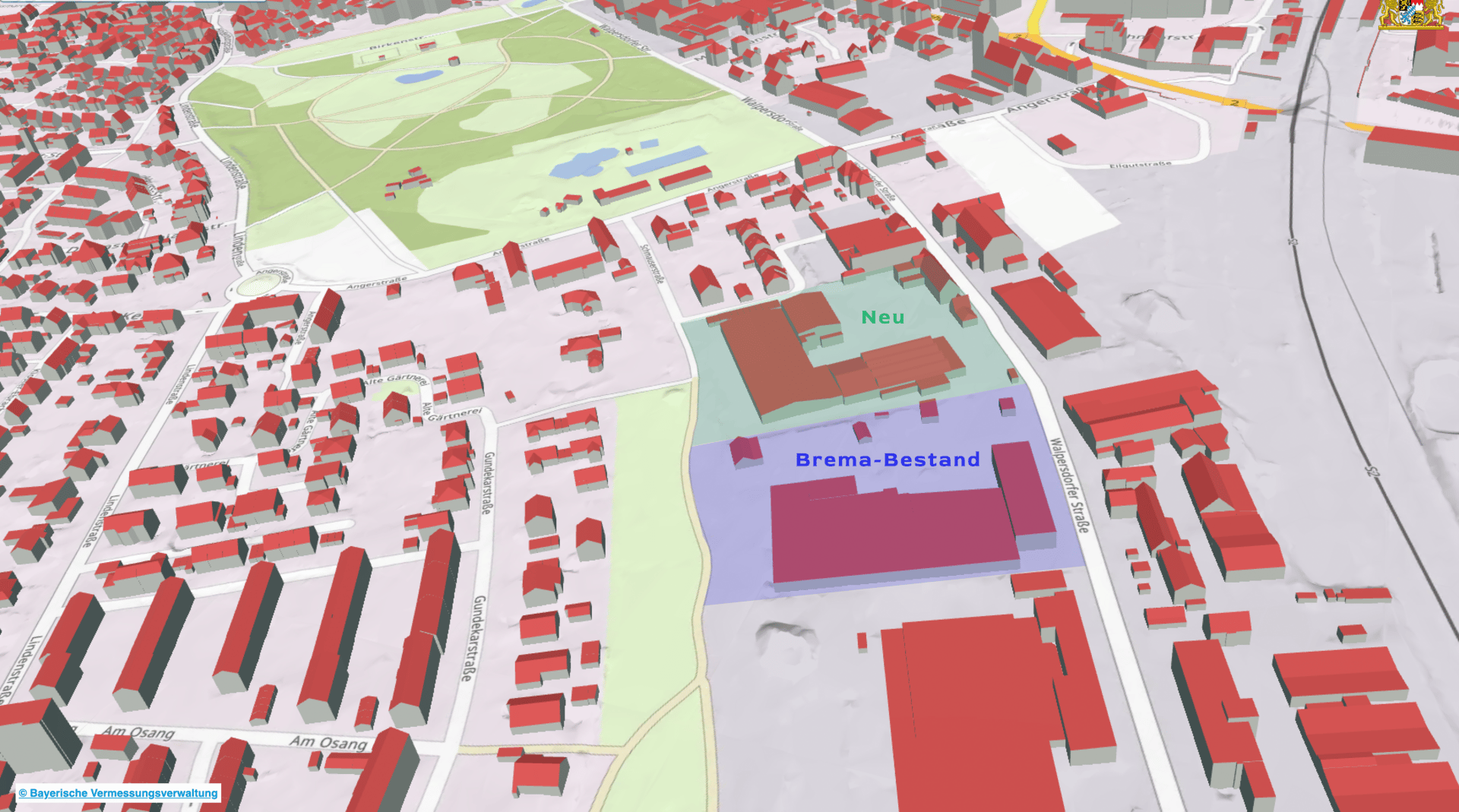 Quelle: Bayernatlas | 3D Darstellung des nun erweiterten Geländes an der Walpersdorfer Straße